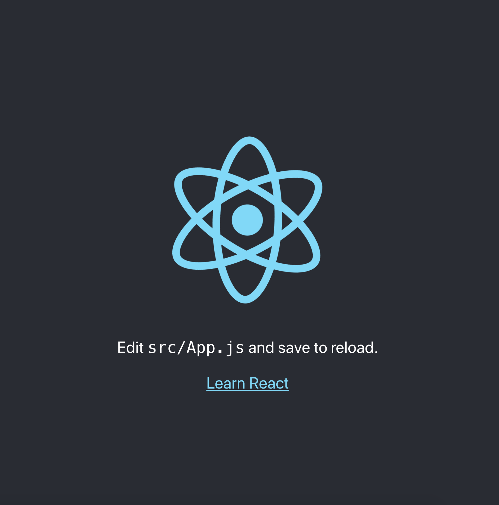 다음과 같이 새로운 화면이 실행된다면, react 개발환경구축 끝.