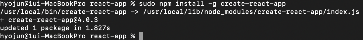 - 터미널에서 cd 명령어를 이용하여 생성한 디렉터리 위치로 이동한다. ( ex. cd Users/hyojun/Desktop/react-app )