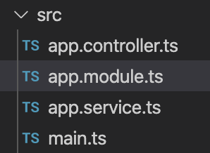 기본적으로 프로젝트파일들을 생성했을 때, 가장 중요한 폴더 src를 살펴보면 controller, module, service, main 파일이 있다.